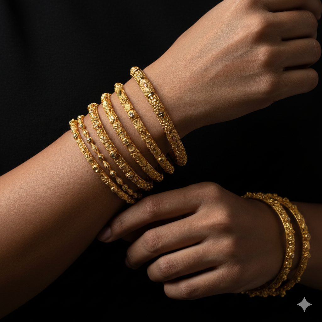 Discover bangles that define grace and sophistication. Made with exquisite gold and carefully selected gemstones, our bangles are designed to shine effortlessly, adding a touch of luxury to every occasion.