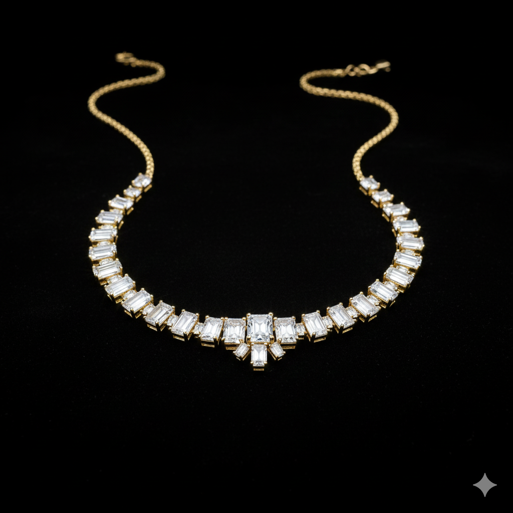 Our necklace collection embodies royal craftsmanship and refined beauty. Featuring radiant gemstones and flawless diamond detailing, each piece is designed to make a statement of elegance and lasting luxury.